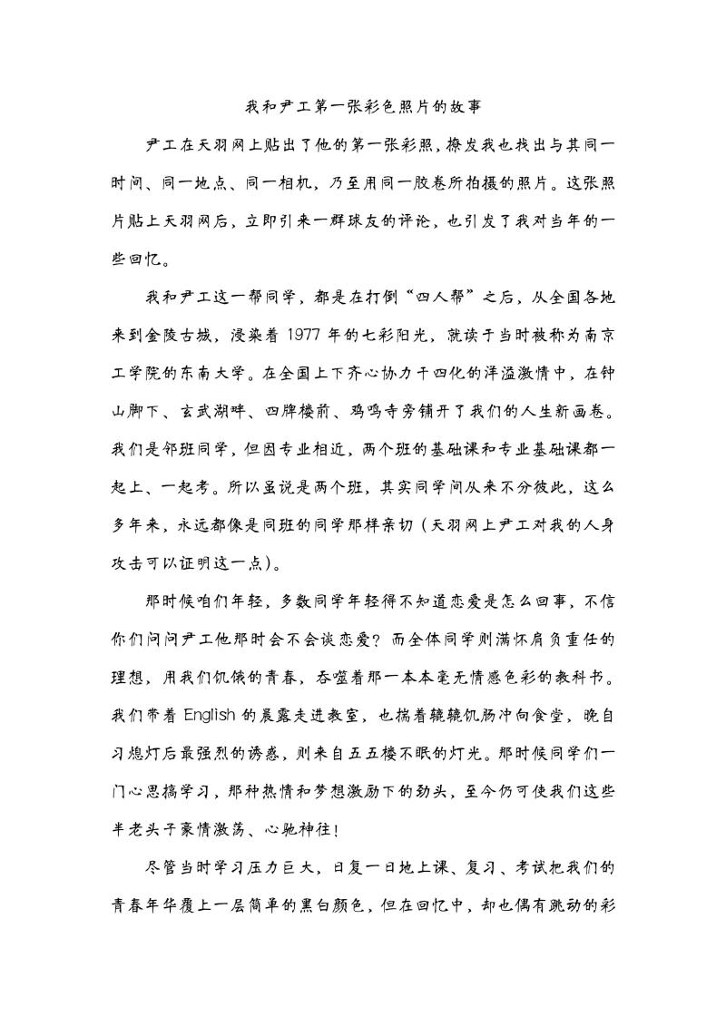 一张照片引发的往事——76级校友汤涛回忆校园生活