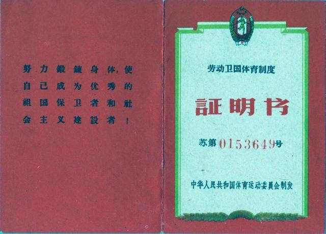 劳卫制二级测验及格证明书封面