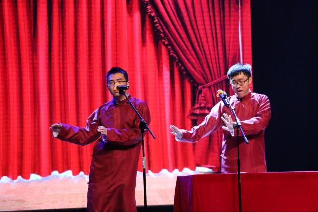 一段开场舞,拉开了晚会的序幕。轻松欢快的三句半,演员们巧问妙答,表达了作为新生初入东大的欣喜,和身为东大人的自豪。之后的舞蹈、歌唱、小品等节目,或是展现异域风情,或是回归传统文化,或是抒发大学感慨,或是吐槽寝室生活,一次次地把全场气氛推向新高度。