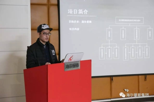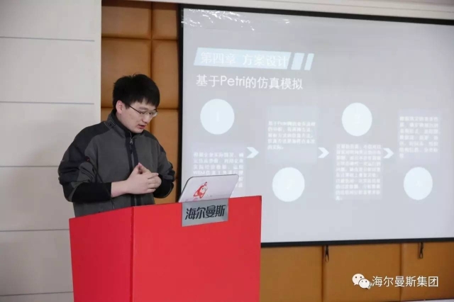 项目汇报会上,同学们依次对两个课题项目进行了汇报,分别是《海尔曼斯成品配送体系分析与设计》、《海尔曼斯技术中心新品设计工作流程优化设计》,两个课题分别解决成品配送体系的搭建和新产品设计工作的排程系统。同学们通过前期调研,针对企业在实际排单和仓储系统管理中存在的问题,具体阐述了研究的技术路线、问题与难点、流程建模以及如何更好地实现仓库存储、订单处理、拣货与配送。许总指出这两个课题项目研究具有很强的实践性与应用价值,特别是在成品配送体系中,对于存储容量、区域的合理性、拣货的合理分配等初步提出了管理流程的优化要求,方案可操作性强,则能很好地帮助企业解决实际问题。黄卫老师担任江苏省物流师国家职业资格鉴定专家组成员,是“供应链物流管理”的专家教授,也对课题研究给出专业指导。