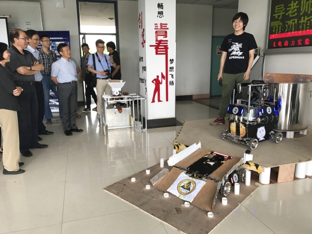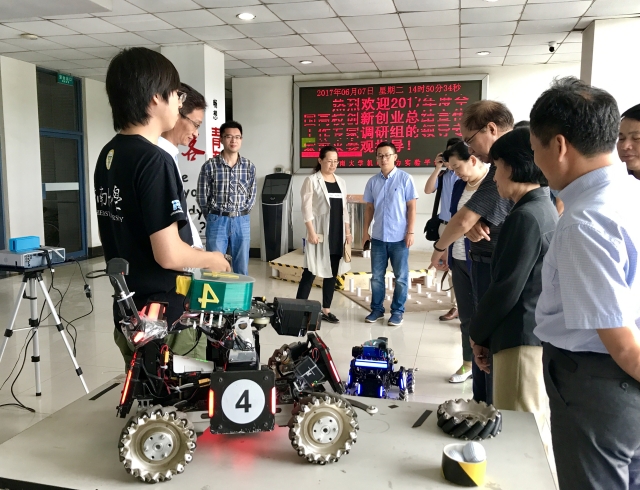 6月6日下午,2017年度全国高校创新创业总结宣传工作专家调研组到我院检查创新创业工作,东南大学党委副书记郑家茂、学生处处长孙莉玲、教务处副处长沈孝兵、学生处副处长宋健刚等老师陪同检查。机械工程学院党委副书记王斌、团委副书记梅仂盈及东南大学机器人俱乐部、东南大学方程式赛车队的相关负责同学接待了专家调研组。
