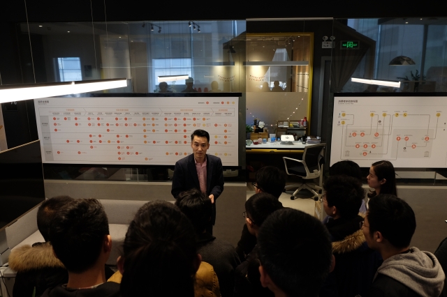 在公司合伙人范震隽的引导下,我们参观了唐硕体验创新咨询公司用于会议以及日常工作的办公环境,其大方,简洁的房间布局令人倍感舒适,感受到了唐硕专心,开放的工作氛围,颠覆了我们对传统工作环境的想象。