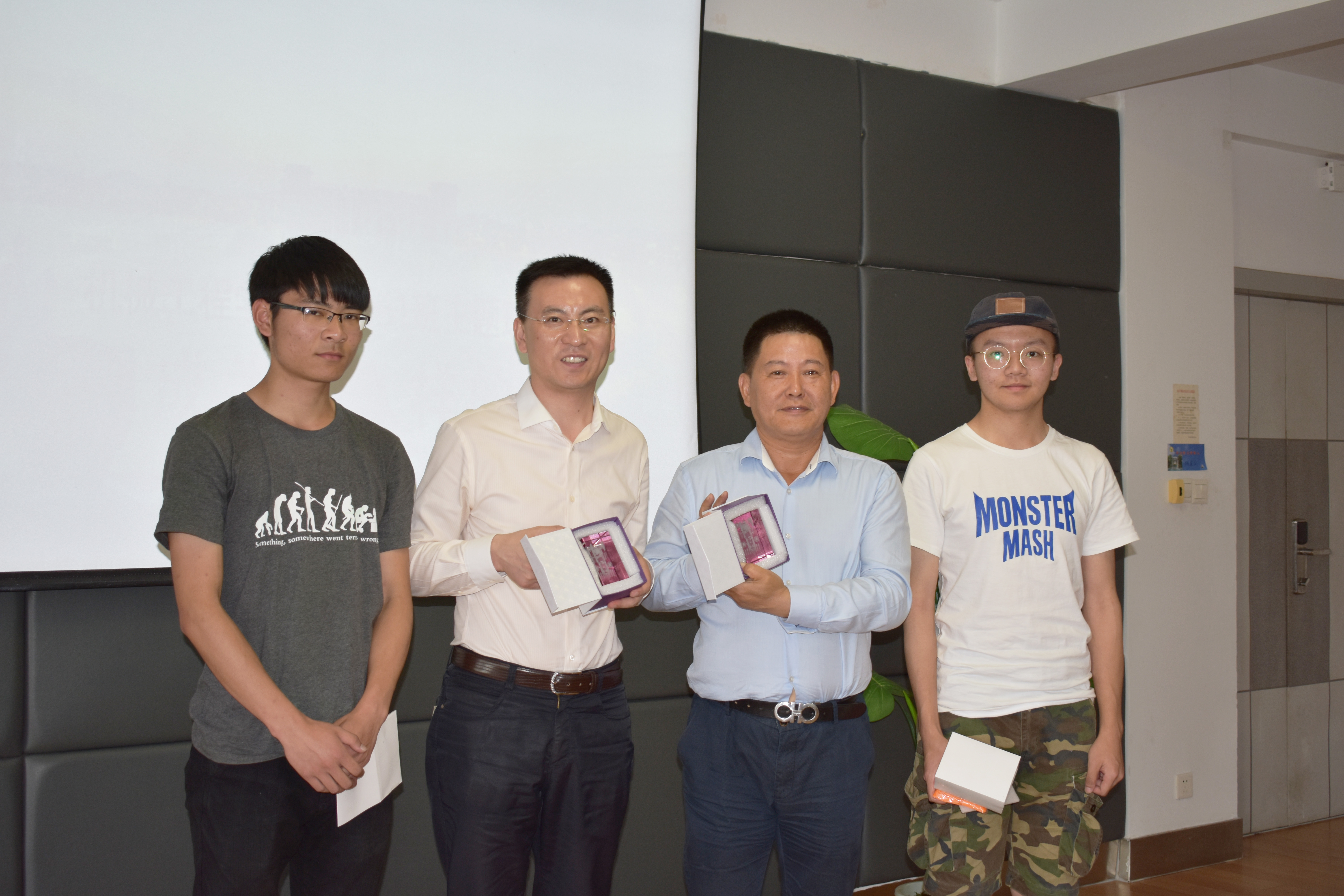 之后,由学生代表向校友赠送礼物,并合影留念。