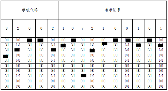 说明: 1、准考证号共十五位。前五位是学校代码。2、此为320021072100101示例图,请按实际准考证号正确填涂。3、填涂前请看清答题纸上的填涂说明。