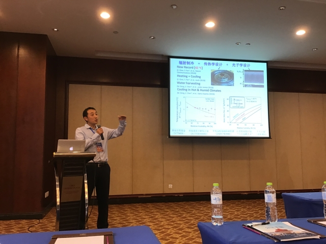 在会上,我院的陈震教授不仅以“热传导分会场主席”的身份主持了热传导方向的报告会,同时还以特邀报告人的身份在大会上作了关于“辐射制冷”的学术报告。陈震教授课题组关于“辐射制冷”的学术研究一直处于国际最前沿,也因此吸引了众多专家旁听,国内同行对该研究方向皆有着非常浓厚的兴趣,亦纷纷期待能和东南大学机械学院能有进一步的合作。