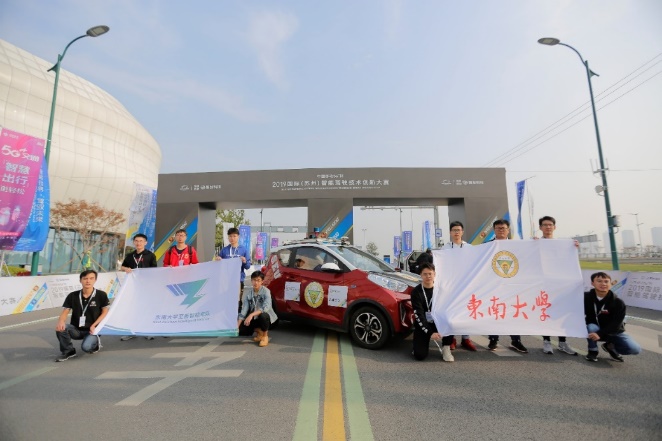 同时,2019年国际(苏州)智能驾驶技术创新大赛也同期开赛,东南大学至善智能车队青年教师庄伟超博士、耿可可博士作为指导老师,带领车队秉持止于至善,为智慧出行赋能的精神,努力攀登,科技攻关,竞逐乘用车组相关竞赛,完成了行人检测、跟车行驶、变更车道等城市场景,信号灯识别、交叉路口碰撞探测等V2X挑战科目,最终获得高校乘用车组第一名的成绩,斩获科技领先奖。