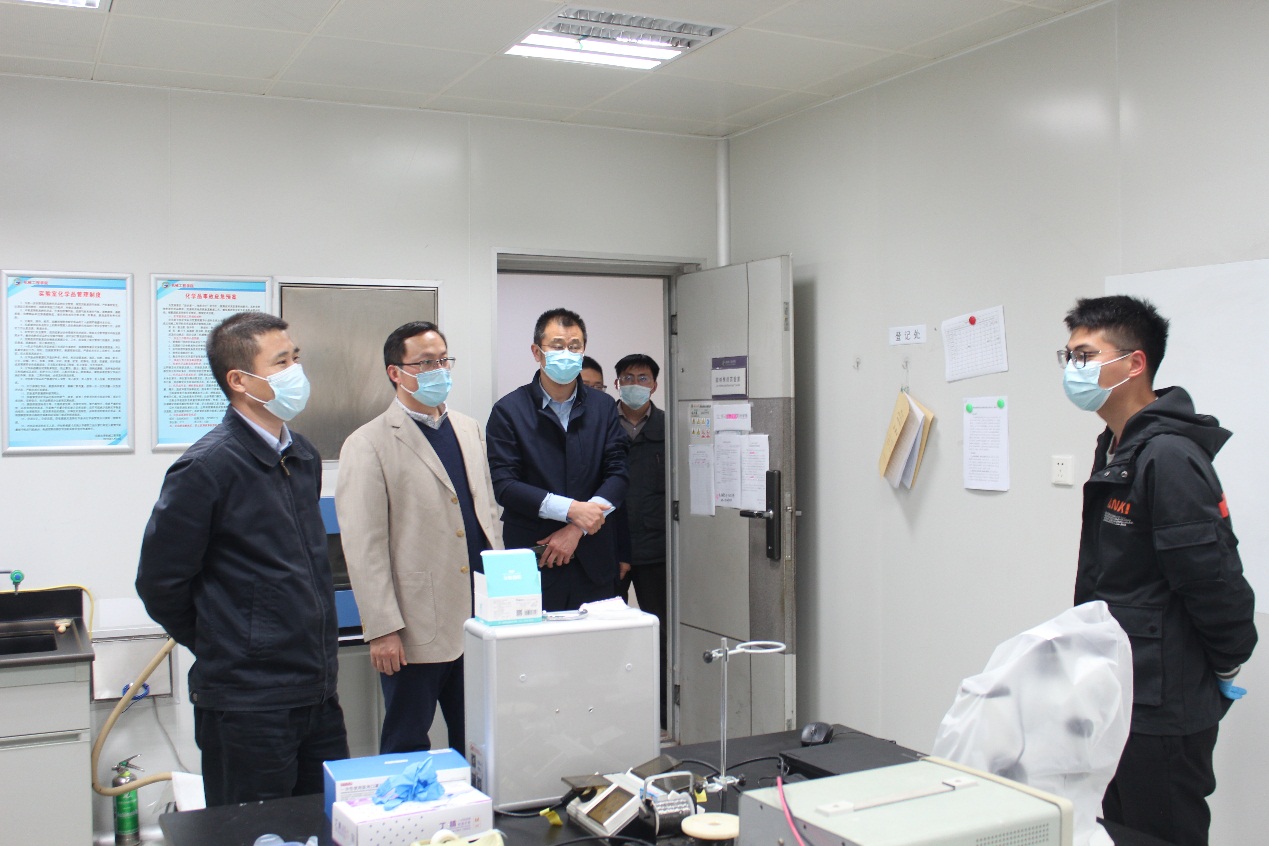 张校长一行实地检查了学院实验室、研究生工作室等重点岗位,与学生详细的交谈,了解学生返校路途、科研开展、住宿用餐、应急处置、疫情防控措施等方面的落实情况,鼓励同学克服一时的困难,努力学习。要求学院充分做好学生返校后的实验室防疫工作,同时,学院要实时掌握学生的全部信息,做到疫情防控和学习科研并重,确保学生有序稳妥的开展科研工作。