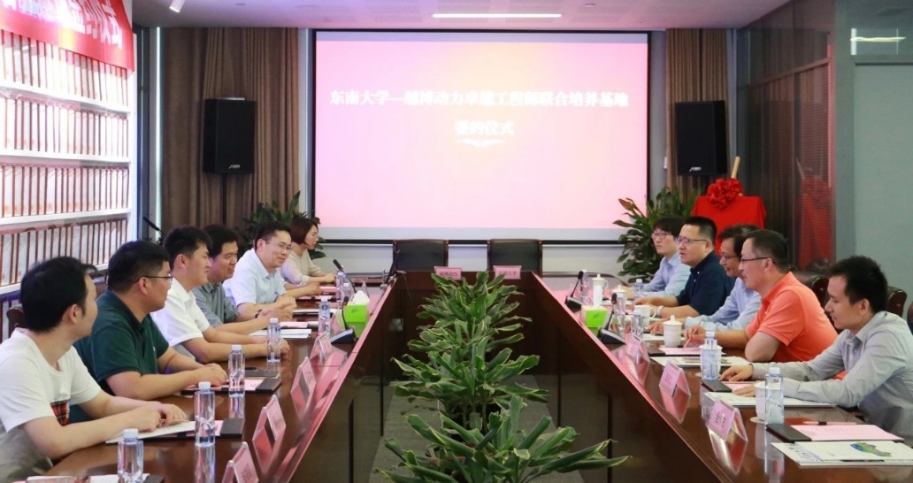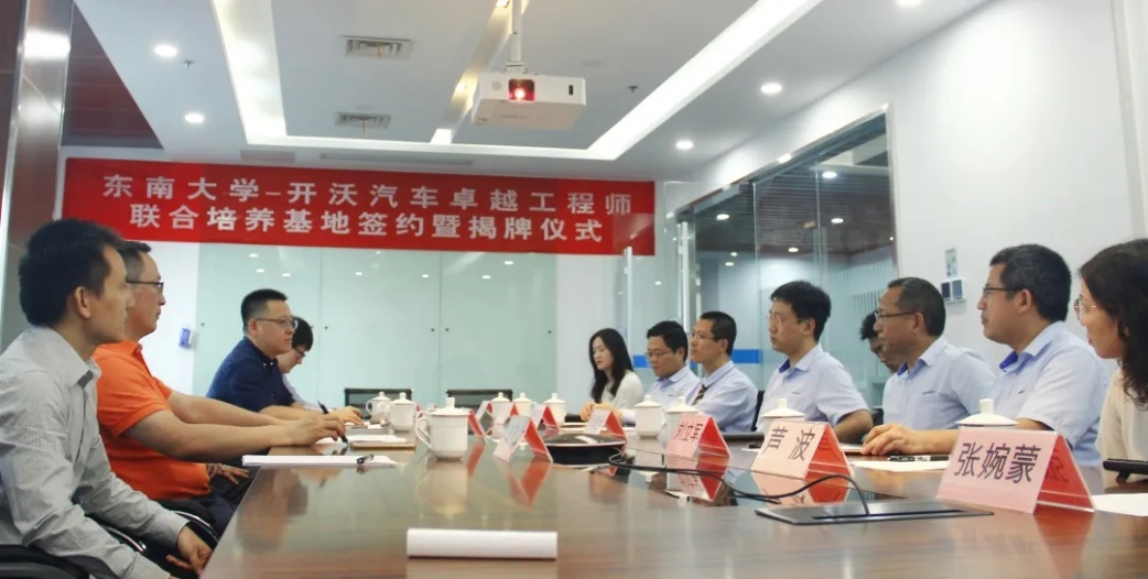 2020年6月18日,东南大学与开沃新能源汽车集团股份有限公司、南京越博动力系统股份有限公司就“卓越工程师联合培养基地”举行签约暨揭牌仪式。东南大学教务处副处长沈孝兵教授、机械工程学院副院长殷国栋教授、副院长毕可东教授、莫景文副教授、庄伟超博士等出席了签约仪式,开沃汽车集团常务副总裁董钊志、人力资源部乔达总监,越博动力董事长兼总经理李占江、副总经理兼新能源汽车研究院院长蒋元广等领导参加签约。