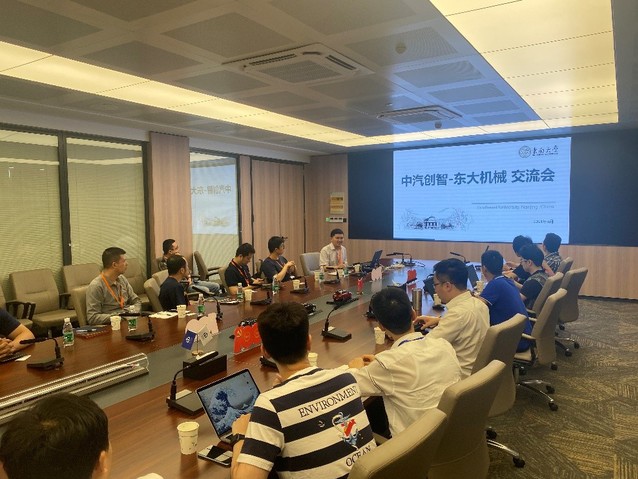 在简短的欢迎词后,司胜营总经理带领大家参观了中汽创智大厦,并对公司运营情况和未来发展规划做初步介绍。祝小元副教授代表机械学院青委会对学院在车辆电动化、智能化、网联化等科研领域的研究工作和平台建设情况进行了简要的介绍。