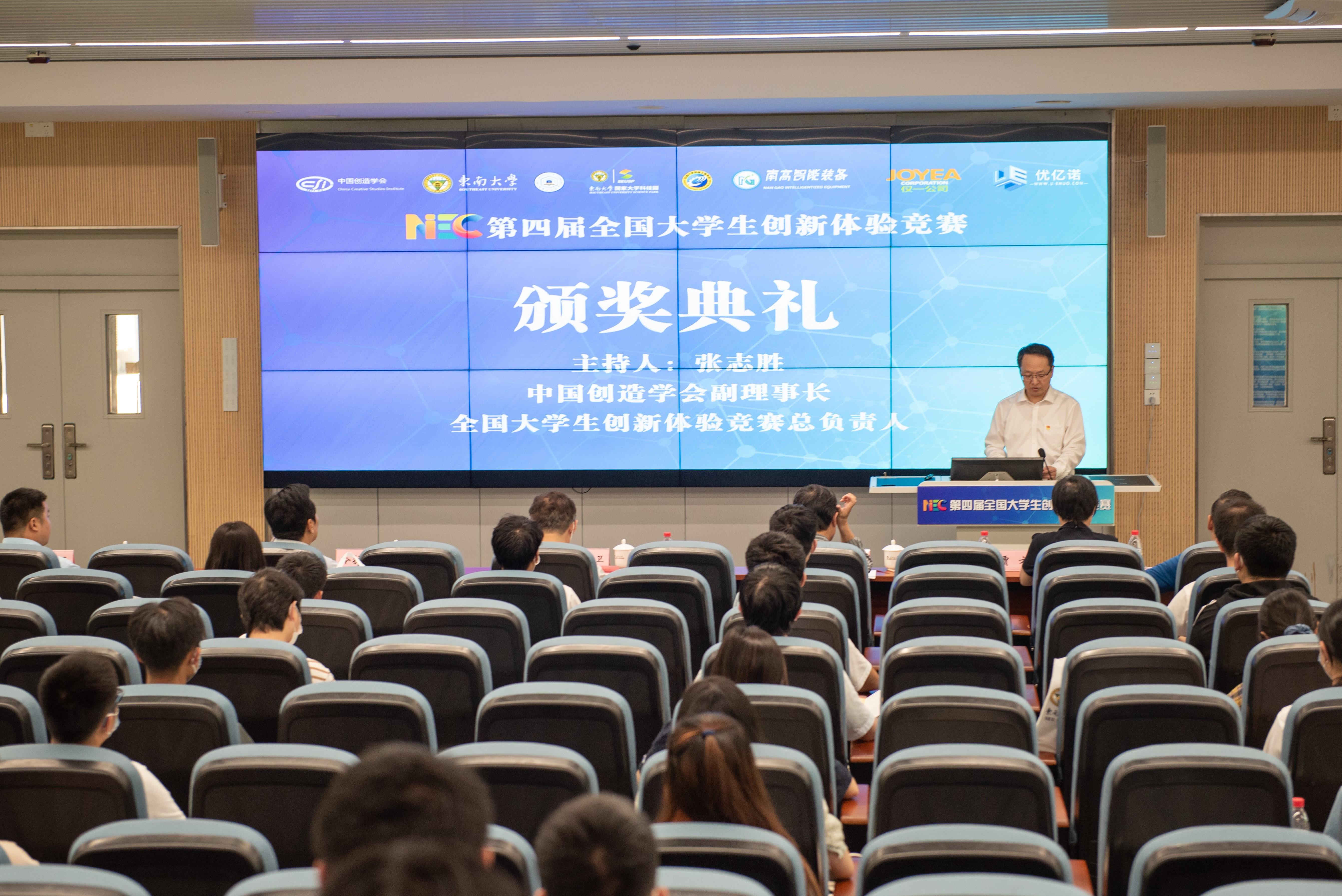 6月6日,第四届全国大学生创新体验竞赛颁奖典礼在东南大学九龙湖校区举行。本次竞赛由中国创造学会主办,东南大学和安徽工业大学联合承办,东南大学国家大学科技园、安徽工业大学创新教育学院、开云体验app官方入口组织实施。中国创造学会常务副理事长张亚雷、东南大学党委副校长黄大卫、澳门中西文化创意产业促进会理事长李嘉曾出席并致辞,来自东南大学、安徽工业大学、中国创造学会、竞赛组委会及支持单位的代表以及部分参赛师生等参加了典礼。典礼由开云体验app官方入口党委书记张志胜主持。