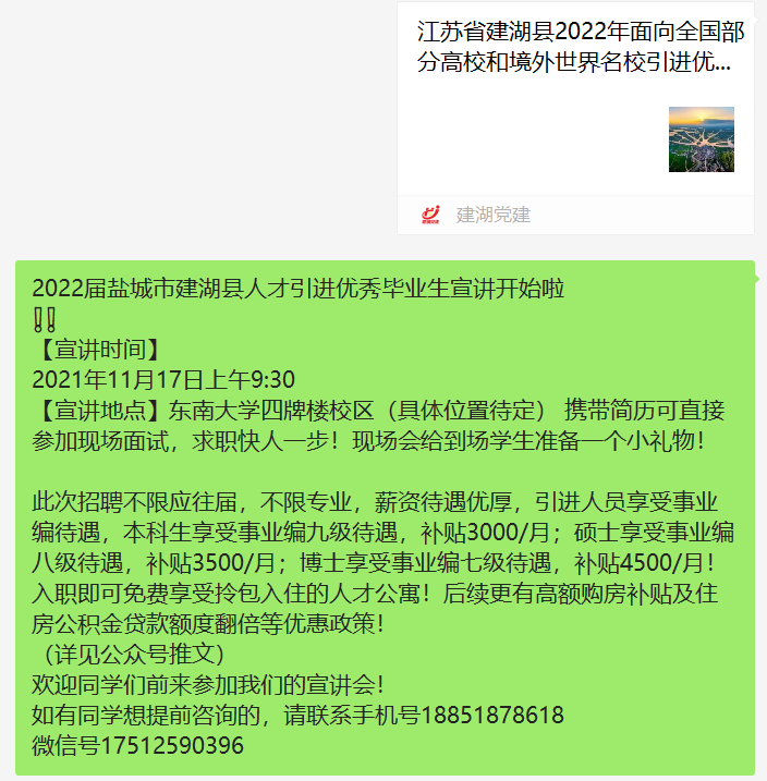 2022届盐城市建湖县人才引进优秀毕业生宣讲开始啦