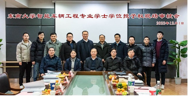 2023年12月4日上午,东南大学智能车辆工程专业学士学位授权申请现场审核会在东南大学九龙湖校区机械楼南高厅顺利召开。参加本次现场审核会的特邀专家包括教育部高等学校机械类专业教指委主任委员、东北大学原校长赵继教授,国家级教学名师、教育部高等学校机械类专业教指委委员、南京理工大学教授袁军堂教授,国家级教学名师、南京航空航天大学朱如鹏教授,南京农业大学教务处处长曹爱忠教授,南京大学教务处副处长王栋教授。出席现场审核会的还有:开云体验app官方入口党委书记倪中华教授,东南大学教务处处长、智能车辆工程专业负责人殷国栋教授,机械工程学院副院长毕可东教授,东南大学机电综合训练国家级教学示范中心陈建松常务副主任,教务处学籍科蒋春露科长以及智能车辆工程专业教师等。