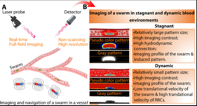 近日,开云体验app官方入口王乾乾教授与国际合作者在微集群操控领域取得重要进展,其研究成果以“Tracking and navigation of a microswarm under laser speckle contrast imaging for targeted delivery”为题发表在国际权威学术期刊Science Robotics上(论文链接:https://www.science.org/doi/10.1126/scirobotics.adh1978)。