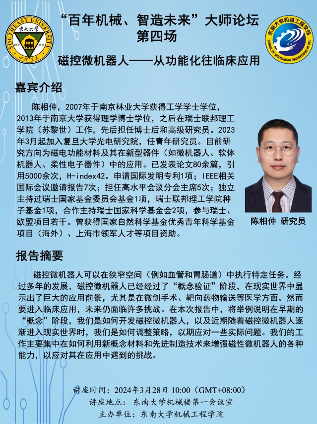 讲座地点: 东南大学机械楼第一会议室