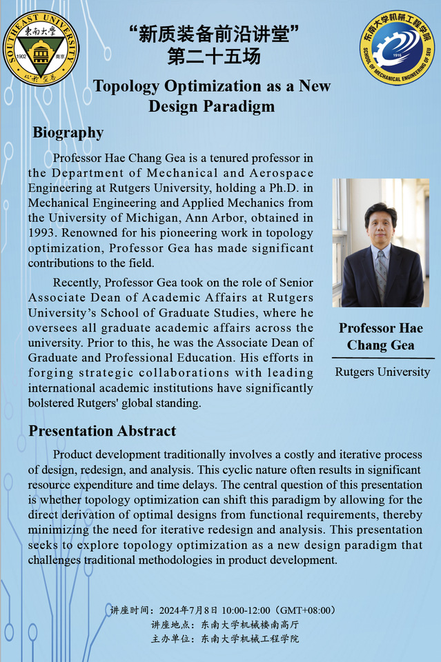 “新质装备前沿讲堂”第二十五场:Professor Hae Chang Gea——Topology Optimization as a New Design Paradigm