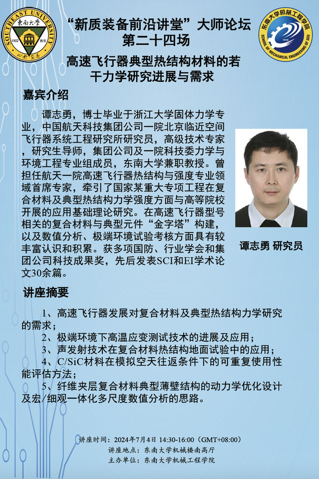 “新质装备前沿讲堂”第二十四场:谭志勇研究员——高速飞行器典型热结构材料的若 干力学研究进展与需求