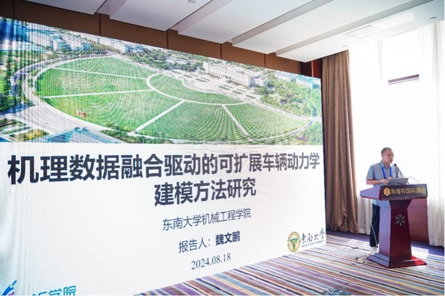 同时,本次论坛设置了6个分论坛,包括“精密与微纳制造技术前沿”、“多功能融合结构增材制造”、“机械系统动力学与装备智能运维”、“机构设计与机器人前沿技术”、“表面调控与涂层”以及“智能融合—AI 重塑轨道交通与智能网联汽车的颠覆性创新新生态”。其中,我院青年教师魏文鹏副研究员受分论坛“智能融合—AI 重塑轨道交通与智能网联汽车的颠覆性创新新生态”邀请并做主题报告,报告题目为《机理数据融合驱动的可扩展车辆动力学建模方法研究》,该报告聚焦于车辆动力学模型的基础建模理论,探讨了机理-数据融合驱动的数据高效、自适应度高、可解释性强的可扩展车辆动力学建模方法。