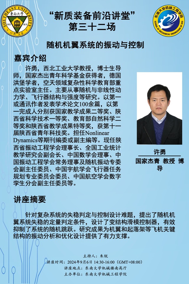 “新质装备前沿讲堂” 第三十二场:许勇教授——随机机翼系统的振动与控制