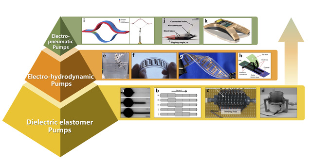 本文重点介绍了微流控策略如何启发和促进柔性致动器、软控制系统和软泵的设计和开发,并讨论了微流控技术解决软体机器人领域关键挑战的思路和方法。例如利用微小流道中的流体行为来控制柔性材料变形,开发基于气压网络结构的柔性致动器;参考微流控片上集成方法,开发基于流体逻辑的柔性控制系统;借鉴电、磁场等微流体控制技术,开发基于电/磁流体动力学的柔性泵。微流控技术不仅成为驱动和控制软体机器人的有效方法,更在开发高度集成、完全自主的无绳化软体机器人方面提供了重要的设计思路和方法。