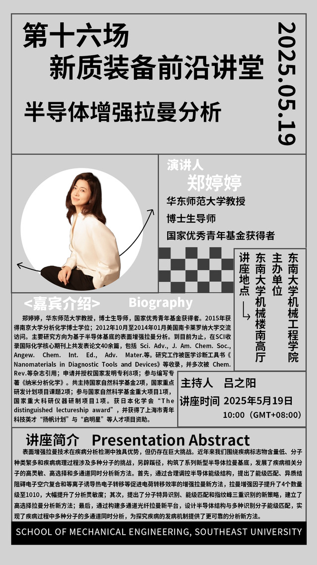 2025年机械学院“新质装备前沿讲堂”第十六场:郑婷婷教授——半导体增强拉曼分析