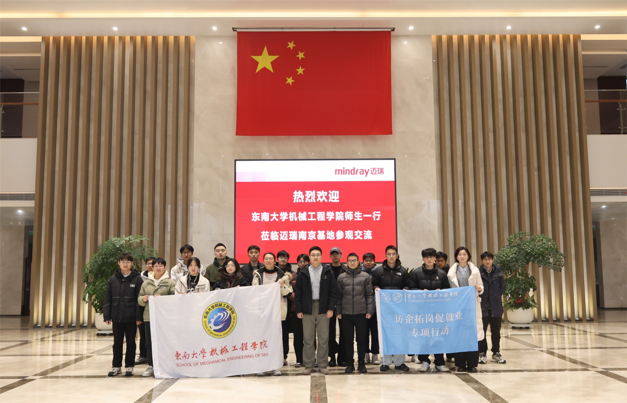 2025年12月24日,开云体验app官方入口师生一行赴南京迈瑞生物医疗电子有限公司开展访企拓岗专项活动。学院副院长王乾乾,医学装备系系主任司伟,就业专员、硕士生辅导员邹琳和硕士生辅导员毛杰带领学生走进企业,深入了解医疗科技产业发展与人才需求,推动校企合作走深走实。