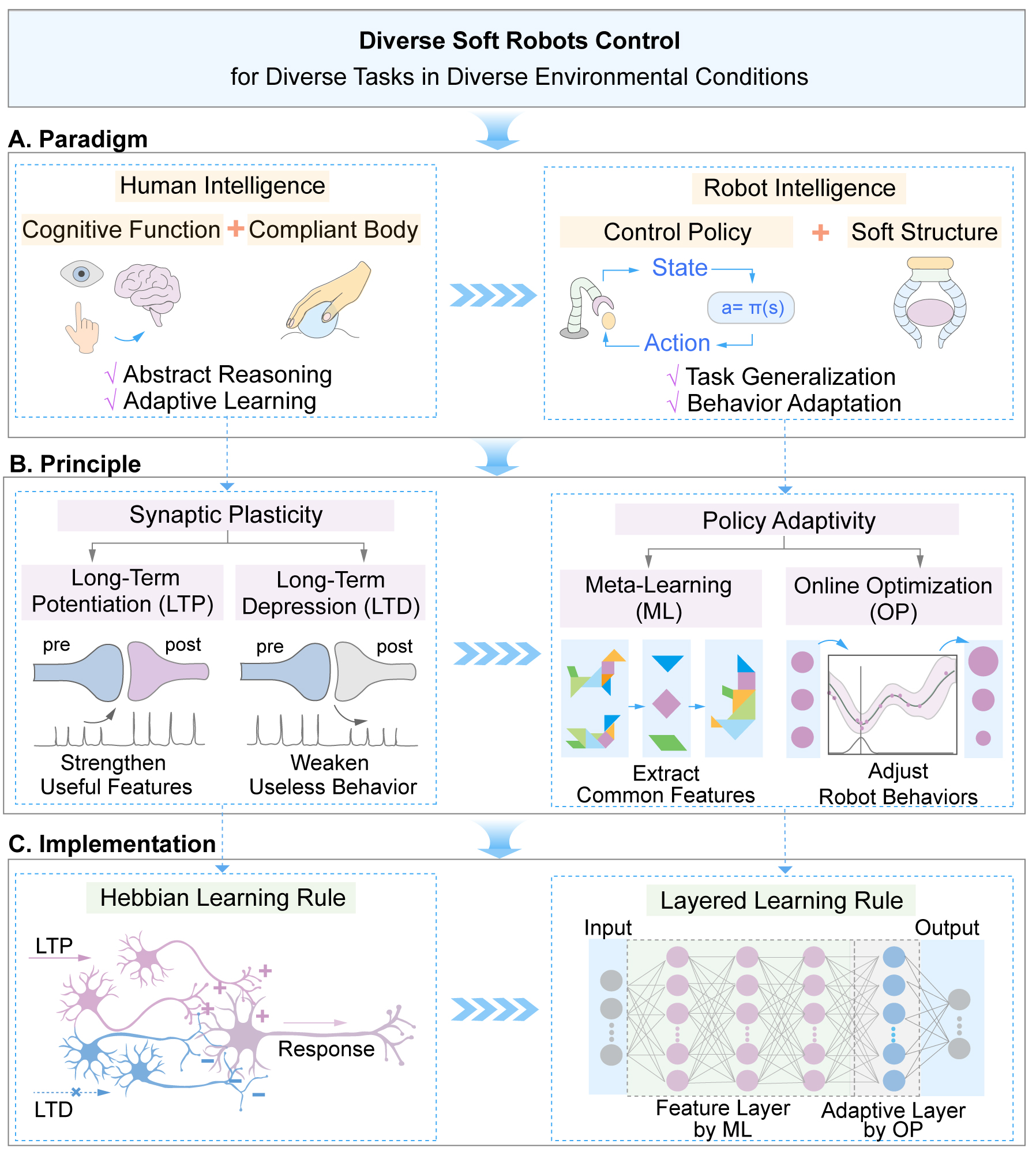 图2.受神经元突触可塑性启发的分层学习机制