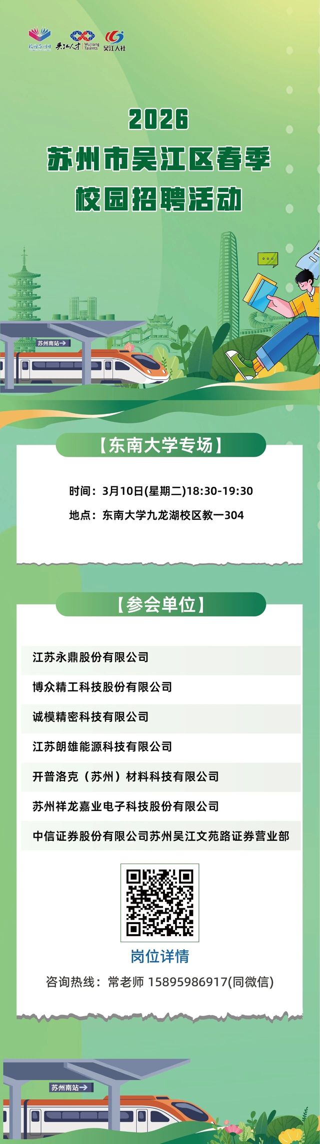 招聘会 | 2026苏州市吴江区春季校园招聘东南大学专场