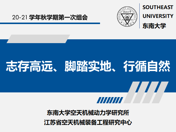 2020年9月11日下午,江苏省空天机械装备工程研究中心、东南大学空天机械动力学研究所在机械楼南高厅举行了2020级新生见面会暨2020-2021学年秋季学期第一次大组会。会议采用线上线下相结合的方式召开,研究中心主任、研究所所长费庆国教授以及张培伟、吴邵庆、何顶顶、姜东、李彦斌、张大海等中心老师出席了此次会议,同时参会的还有空天所50多位研究生。