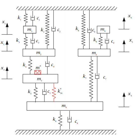 Figure. Six-DoFs damped mass-spring system with added mass and spring