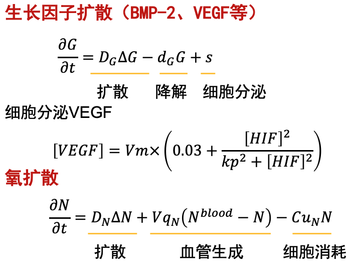 通过对免疫细胞、干细胞等在细胞因子环境下迁移、增殖、分化、凋亡行为的数学定义预测骨器械植入后的骨组织再生、多细胞自组织行为,在此基础上通过设计骨植入器械结构调节微环境,促进植入器械的骨整合。