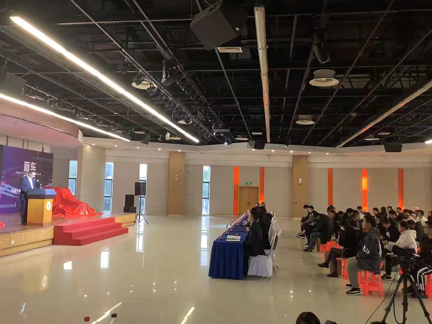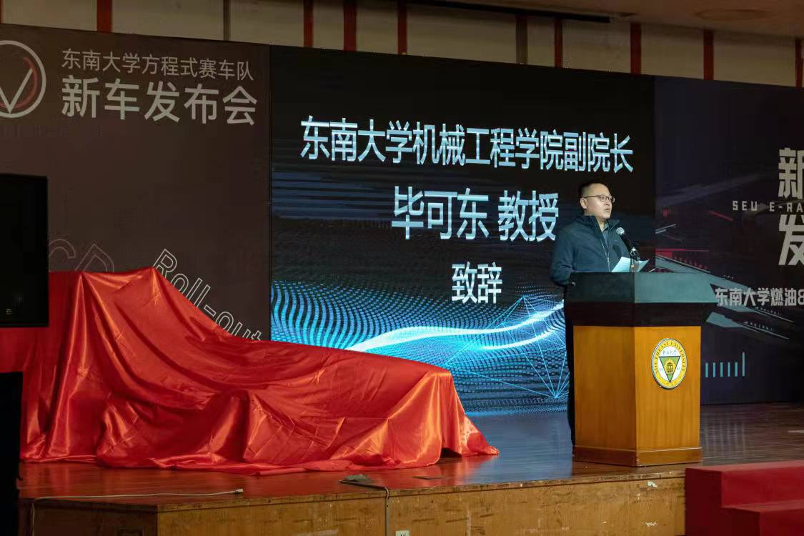 2021年11月9日,东南大学燃油&纯电动方程式赛车新车发布会于焦廷标馆二楼多功能厅举办。东南大学副校长金石、东南大学教务处处长殷国栋、开云体验app官方入口党委副书记兼副院长王斌、开云体验app官方入口副院长毕可东、东南大学人工智能学院副院长董永强、东南大学仪器科学与工程学院副院长祝雪芬、东南大学经济管理学院副院长浦正宁、东南大学电子科学与工程学院副书记曹奕、国家大学科技园部长李大肥,学校相关职能部门负责人、机械工程学院相关领导老师、东南大学方程式赛车协会赞助企业代表等出席发布会。
