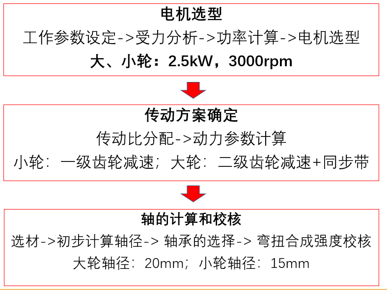 关键零部件的选型和计算。对小车的采用电机以及关键结构选型计算。