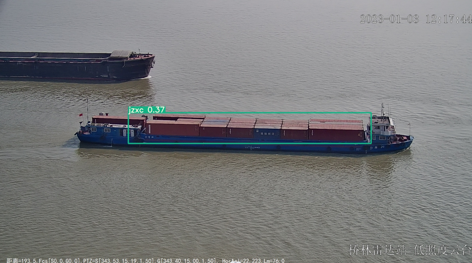 通过对数据库中两千余张图片进行标记,使用yolov5进行图像识别训练,将训练得到的权重文件导入detect图像检测程序中,分别从数据库和网络上寻找不在训练集中的图片进行验证,船舶封仓识别结果基本准确。