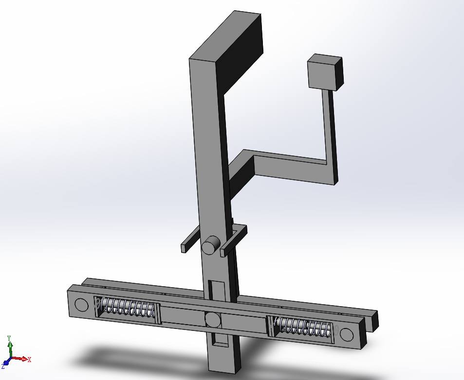 通过连杆左右摆动带动圆柱滚体在弹簧轨道左右运功,挤压弹簧产生受力用于复位。该机构的优点是原理简单,结构灵巧,不足之处是