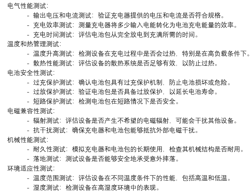 从第三方测试报告中提取出主要测试项目如下: