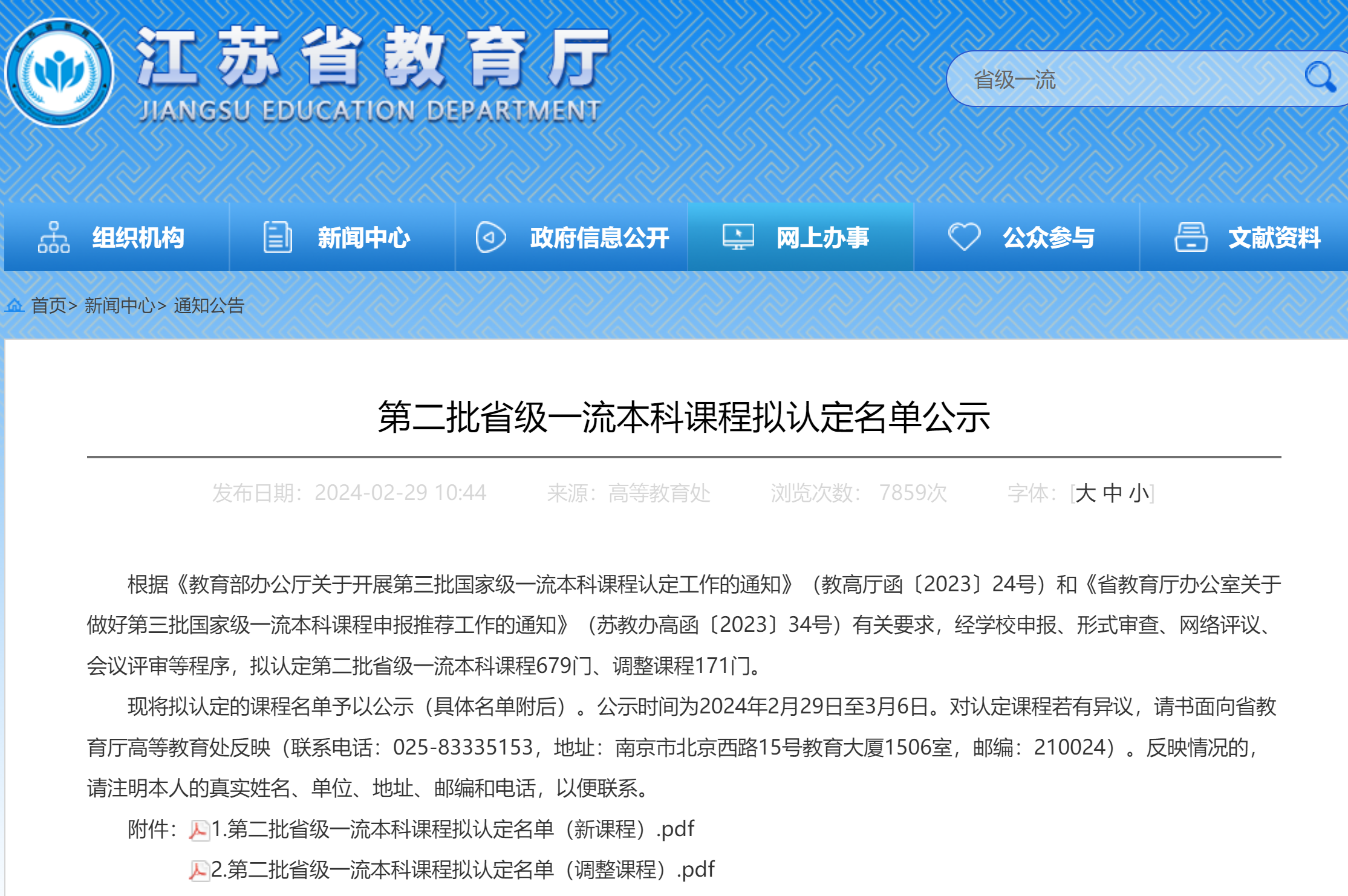 近日,江苏省教育厅发布了第二批省级一流本科课程拟认定名单,我院申报的4门课程全部入选,其中线上课程1门,线下课程3门。
